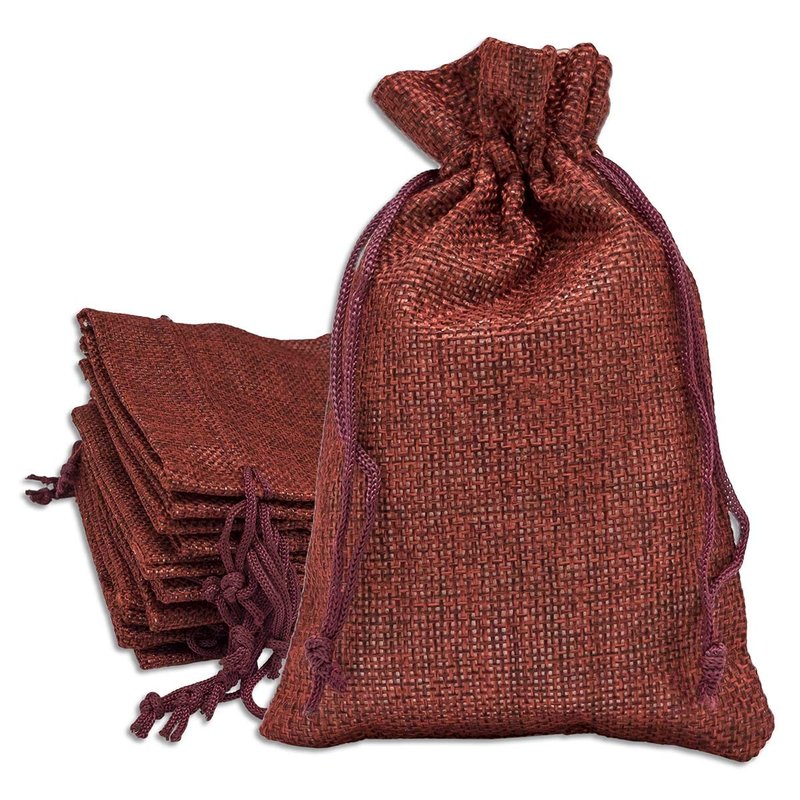 12-Pack 3x4 Natural Burlap Gift Bags w. Drawstring (Maroon Red, X-Small) for Party Favors, Presents or DIY Craft by TheDisplayGuys