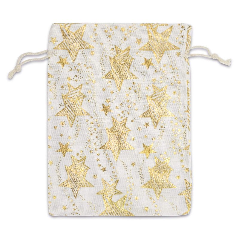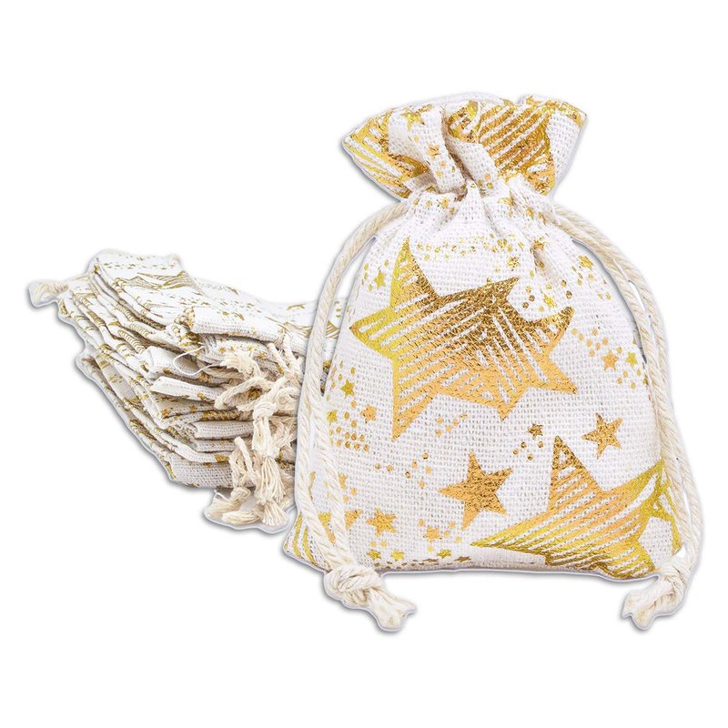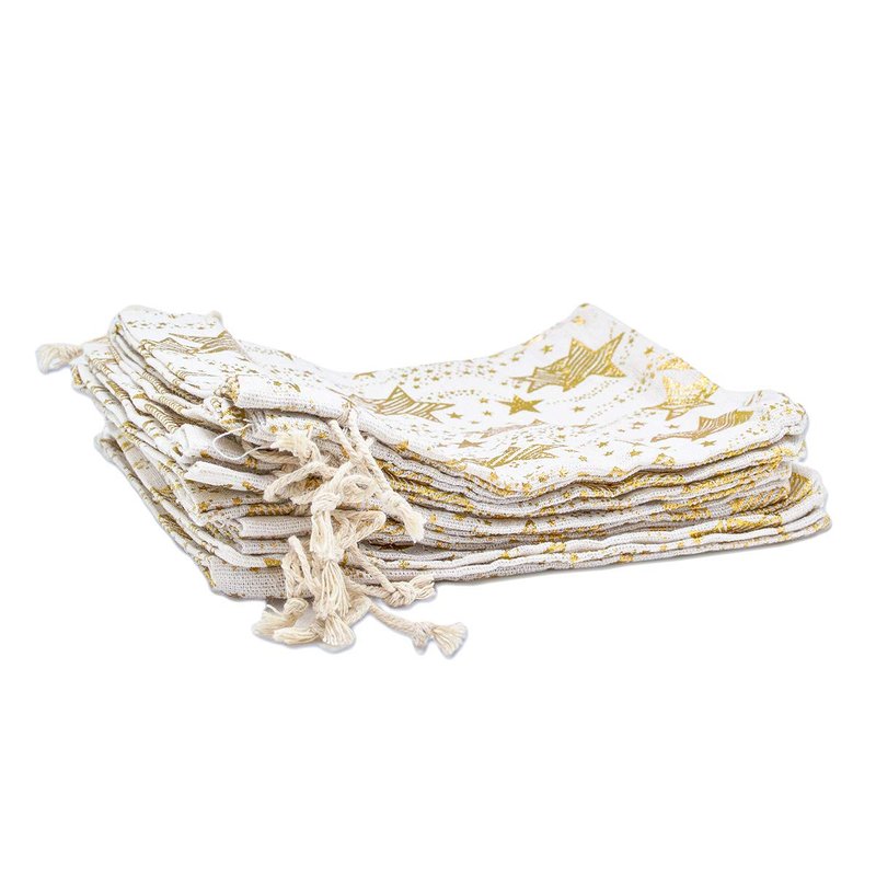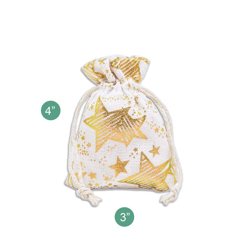 12-pack - 3x4 Reusable Cotton Canvas Muslin Gift Bags w. Drawstring for Presents, Party Favors, Samples (Golden Stars, X-Small) by TheDisplayGuys