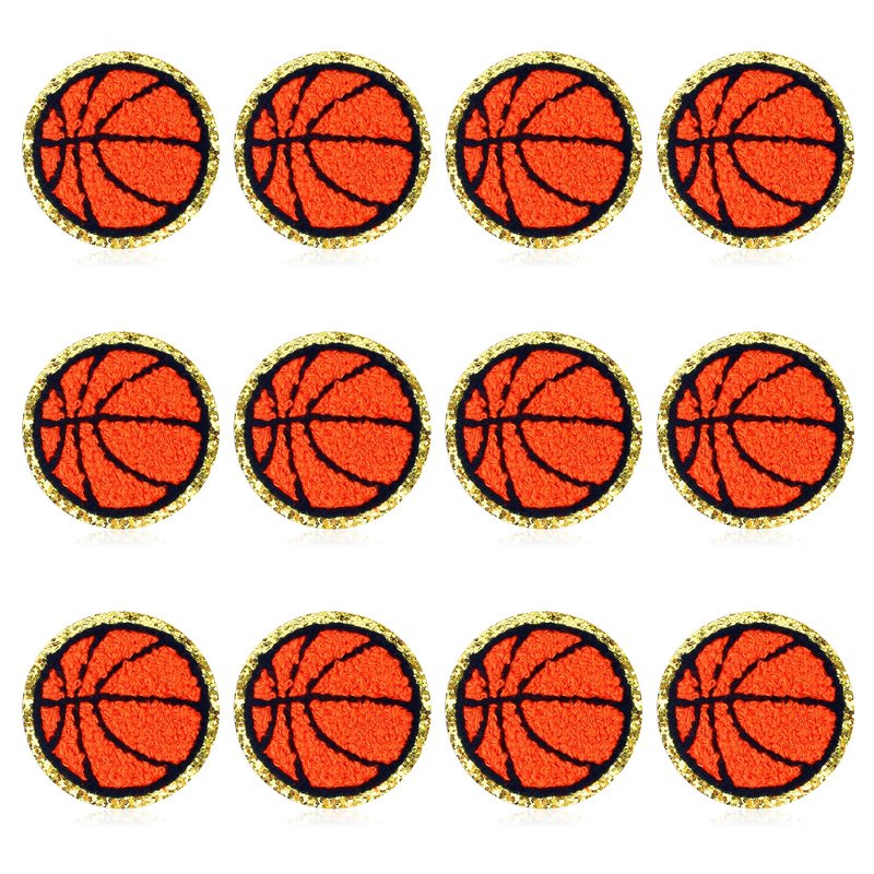 12 Pack Basketball Patch Gold Edges Chenille Patches Basketball Patches Iron On and Sew On Applique Sports Embroidered Patches Badge for Clothes Jeans Jacket Hat Dress Backpacks DIY Clothing Repair