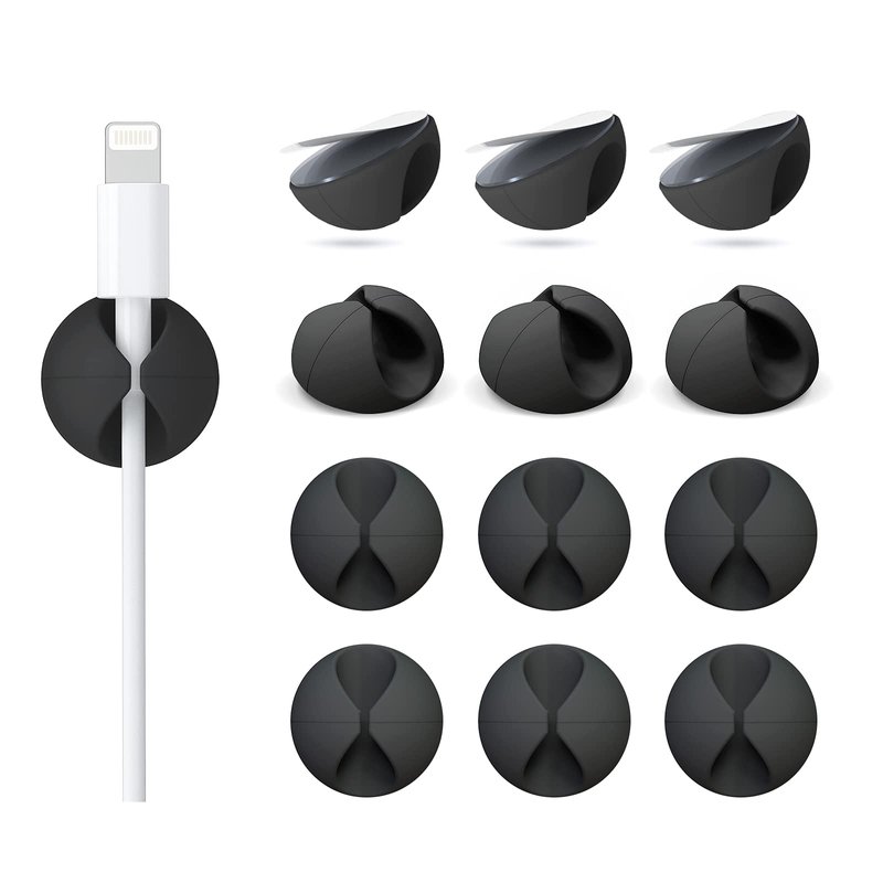 12 Pack Cable Clips, Znben Cord Organizer Holder Adhesive Cord Management Charger Wire Holder Clips for Desk, Home, Office, Car, Cubicle, Nightstand - Black