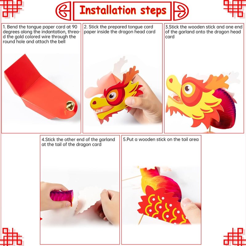- Package Includes: The package includes 12 pieces Chinese DIY paper dragon decorations with 6 different styles, 2 packs for each different style.