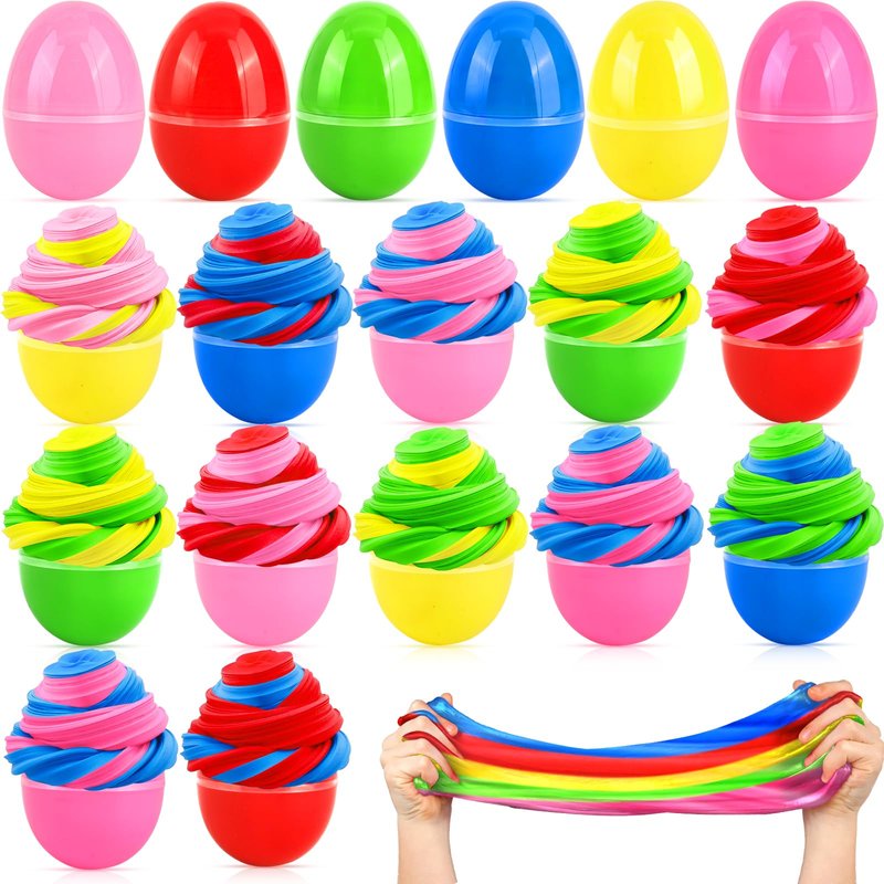 - [ Easter Eggs Filled With Butter Slime ] Package includes 18 pack Butter Slime Kit Filled Easter Eggs. Each size is 2.36*1.77 inch, suitable for Easter eggs hunt, which will be a big surprise for the kids.