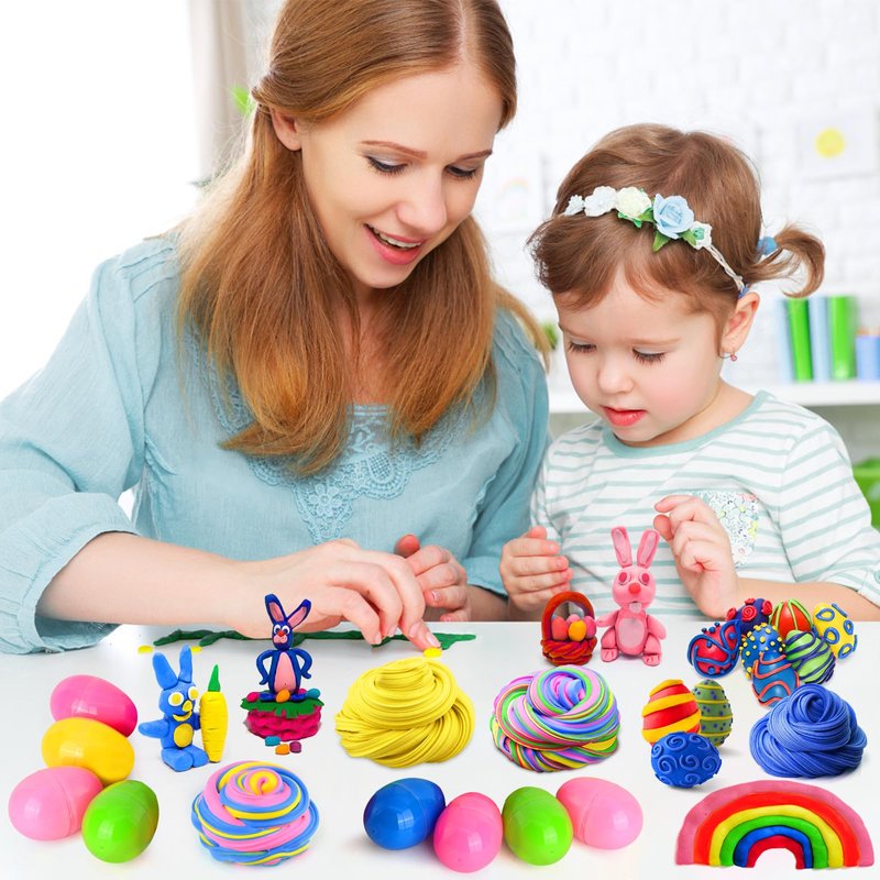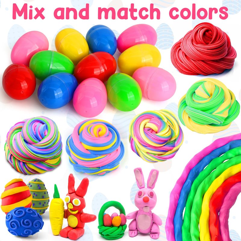 - [ Not Sticky & Putty ] The Easter toys are made of clay material, not Sticky and no bad smell, safe for children and adults.Note: You can store your butter slime back to the Easter eggs after playing with so it doesn't dry up.