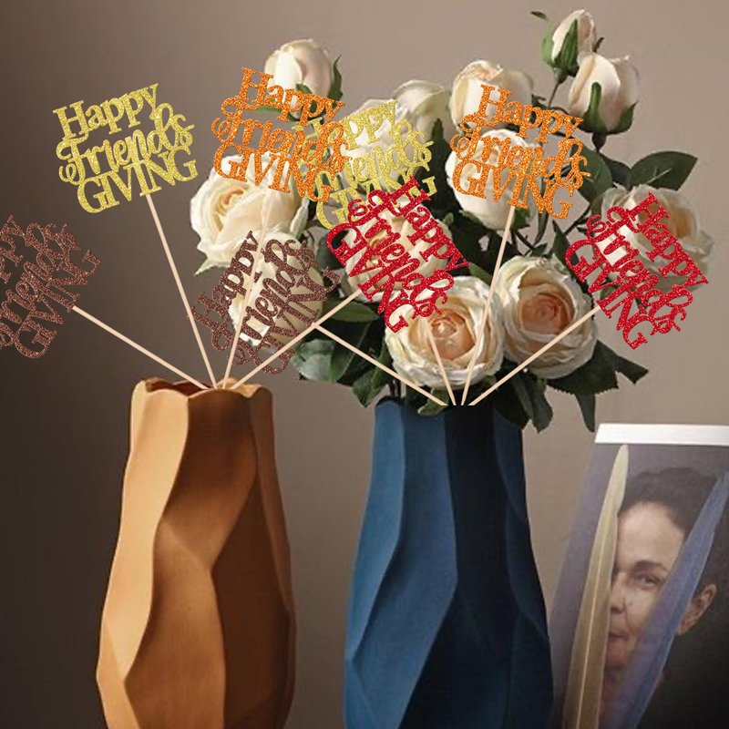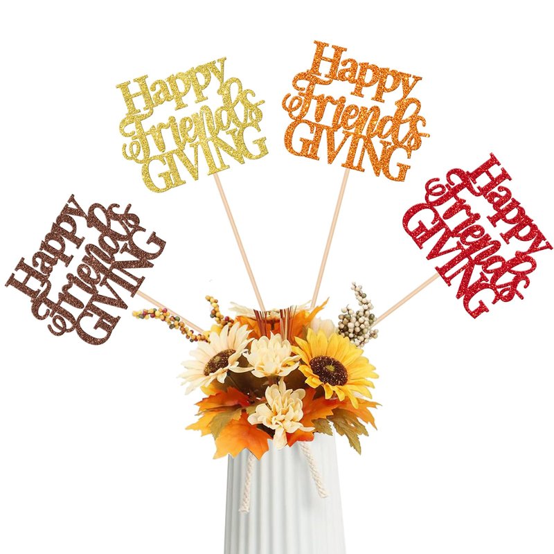 - Package and Size: Includes 12 pack double side glitter happy friendsgiving table centerpiece sticks, they are assembled well. Which can meet your different party decorations needs. The size is 4.4*9.8 inch ( including stick )