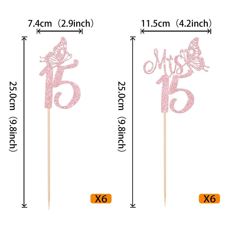 - Package and Size: Includes 12 pack double side glitter mis 15th birthday table centerpiece sticks, they are assembled well. Which can meet your different party decorations needs. The size is 2.9*9.8 / 4.2*9.8 inch ( including stick )
