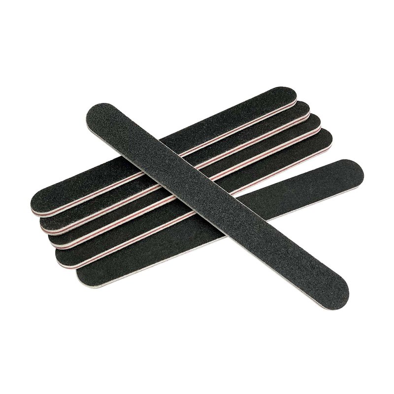 - It has a double-sided diamond nail file, including 12 pack black nail files, one side has a grit of 100, one side has a grit of 180, and the middle is a foam layer. The surface is made of high-quality emery board material, which is very wear-resistant.