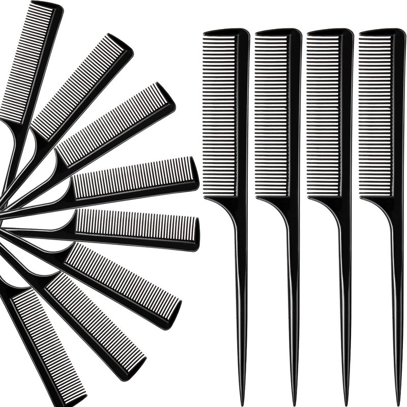 12 Pack Tail Comb Black Styling Comb plastic Anti Static Heat Resistant Tail Comb for All Hair Types, Fine and Wide Tooth Teasing Comb for Men and Women