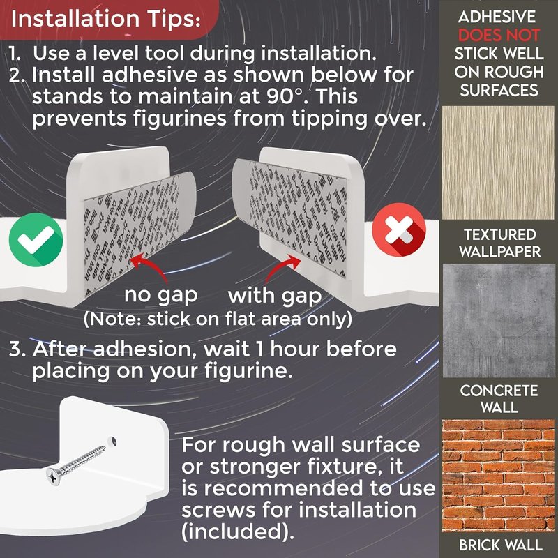 - MOUNTING HARDWARE INCLUDED - For a hassle-free and no-drill installation, you can use the Command strips to install the Pop figure shelves (Note: Wait 1 hour after adhesion before placing your figure). Alternatively, you can use the screws and anchors for stronger fixture.