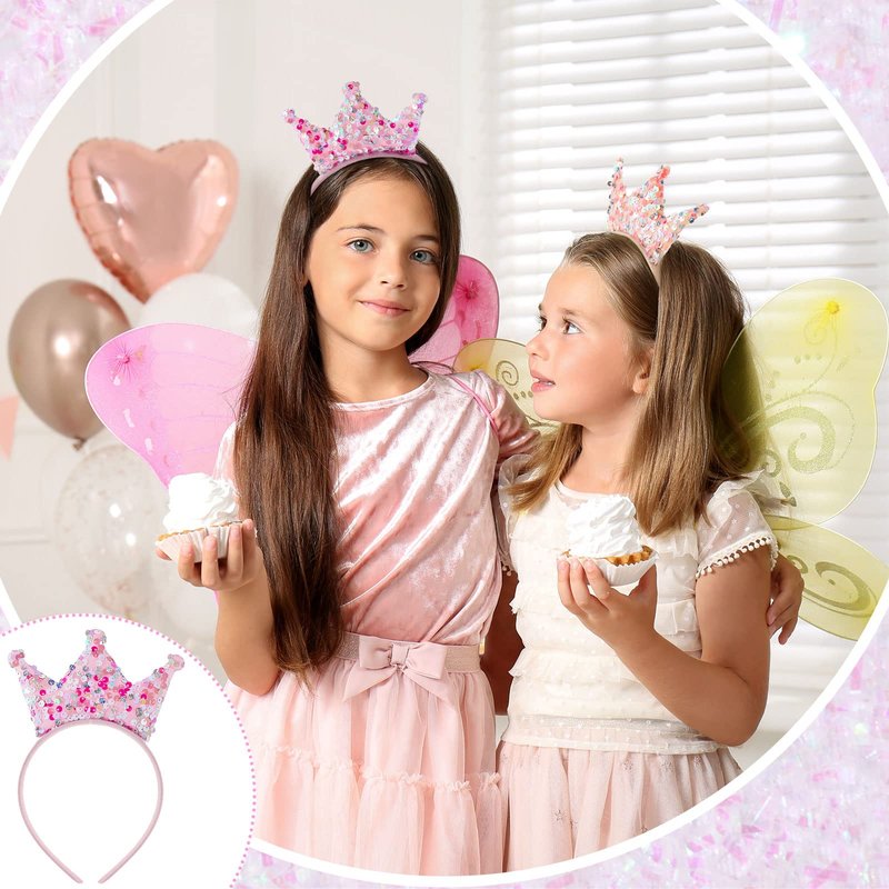 12 Packs Princess Crown Headband, Girls Glitter Headbands Princess Party Favors Sequin Elastic Tiaras for Women Little Girls Birthday Bling Accessories, Pink, Blue, Purple, Yellow, Champagne, Silver