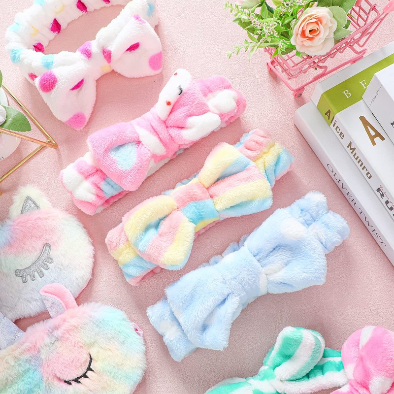 - What's Included: the exquisite gift box contains 6 plush eye masks in 6 different colors and 6 makeup hair wrap headbands in 6 different styles, a nice combination and quantity is sufficient to meet the needs of parties and daily