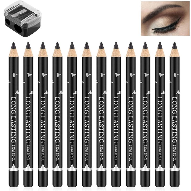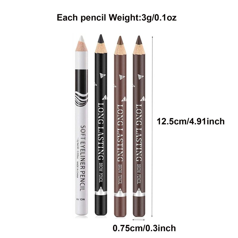 - Eyeliner Brow Pencil with Sharpener Super Value Set: 12-piece eyebrow and eyeliner pencil set with 4 essential colors: White, Black, Brown, and Dark Brown. Comes with a dual pencil sharpener for added convenience.