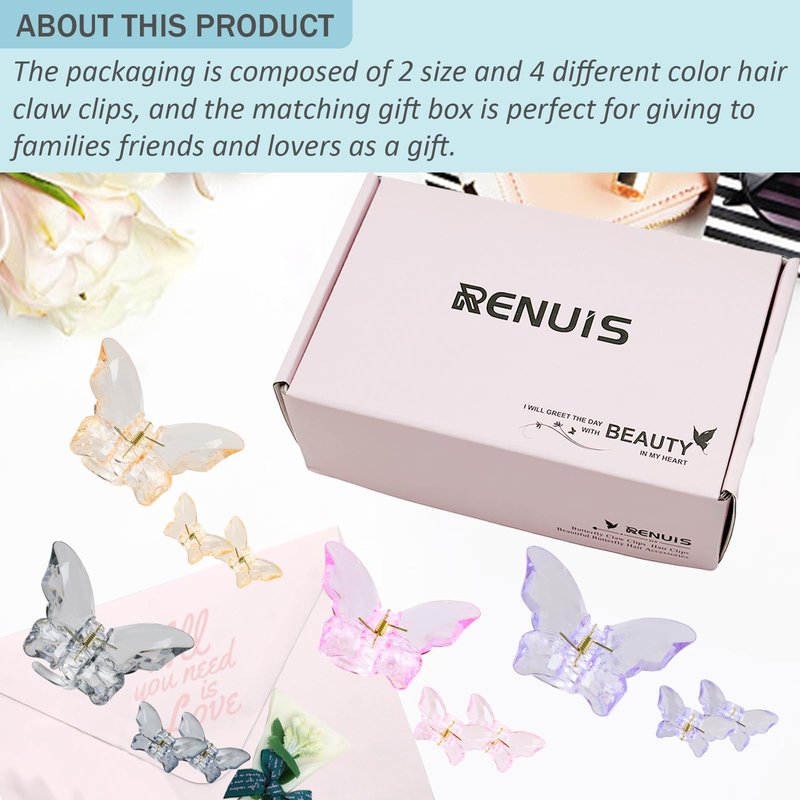 • ❤ 【Ideal Gift】RENUIS butterfly claw clips for thick hair are ideal fashion accessories for your mom, wife, girl friends, friends, etc. And great for girls, teen girls, young lady and women, they are so cute and make a fun addition to any outfit. It is also a warm gift for friends and family on birthday/Mother's day/Valentine's Day/Thanksgiving Day/Christmas/New Year.