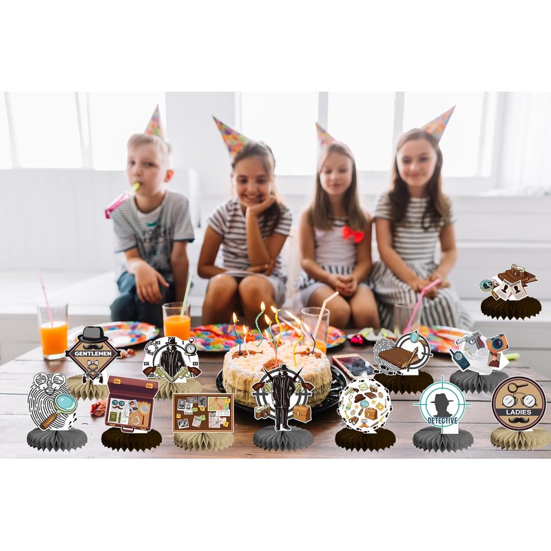 - Detective Table Decorations: Package includes 12 pcs detective honeycomb table centerpieces, contains 12 patterned cardboards and 12 paper honeycombs. Perfect for detective themed parties, mystery parties.