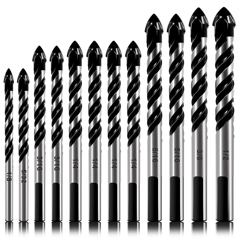 Say goodbye to the days of using dull, inefficient drill bits and say hello to the 12-PCS Masonry Drill Bit Set & Concrete Drill Bit Set. This professional masonry drill bits set is designed to help you tackle tough jobs like drilling through glass, tile, brick, cement, concrete, plastic, wood, and more. The concrete drill set contains 12 pieces in total, ranging from 1/8â to 1/2â in size, allowing you to tackle a wide array of projects. The ceramic drill bit are made from high-grade steel, ensuring a long life and producing clean, accurate holes, helping you maintain a professional finish. The brick drill bit set includes a handy storage case that helps you easily organize and store all your items. Whether you're a professional or a DIY enthusiast, this 12-PCS Masonry Drill Bit Set & Concrete Drill Bit Set is an essential addition to your toolkit. With its long-lasting quality and professional finish, it will help make any project a success.