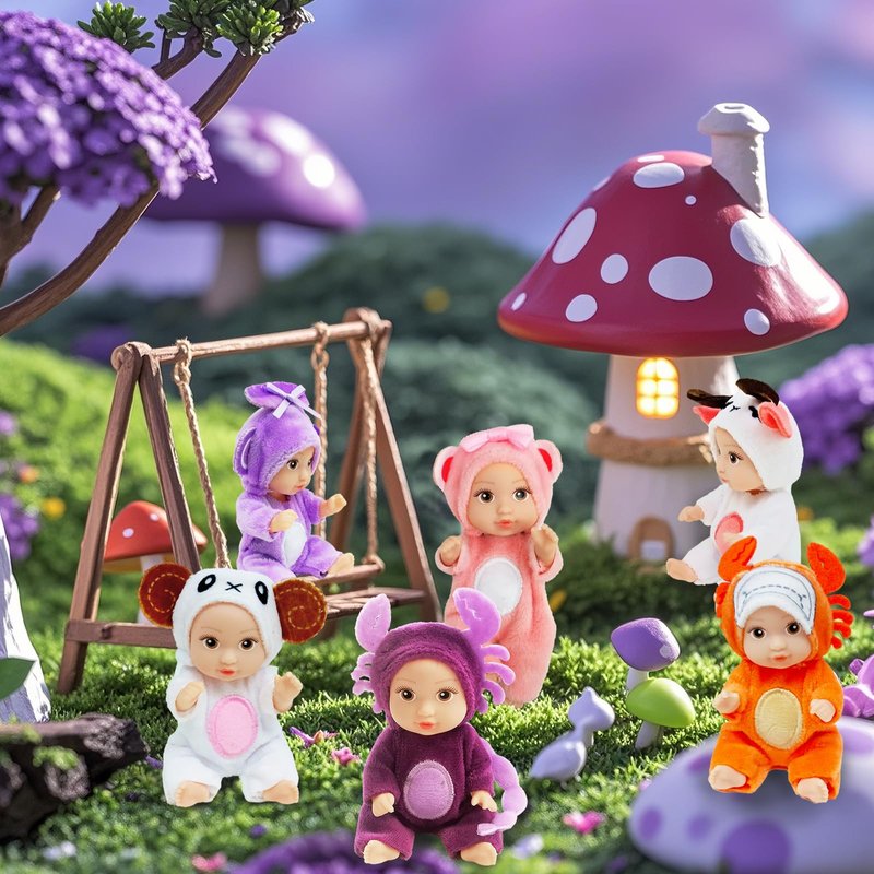 Lifelike Mini Dolls: A set of 12 4-inch mini dolls, each doll is wearing cute zodiac-shaped clothes, including Aries, Taurus, Gemini, Cancer, Leo, Virgo, Libra, Scorpio, Sagittarius, Capricorn, Aquarius, Pisces.