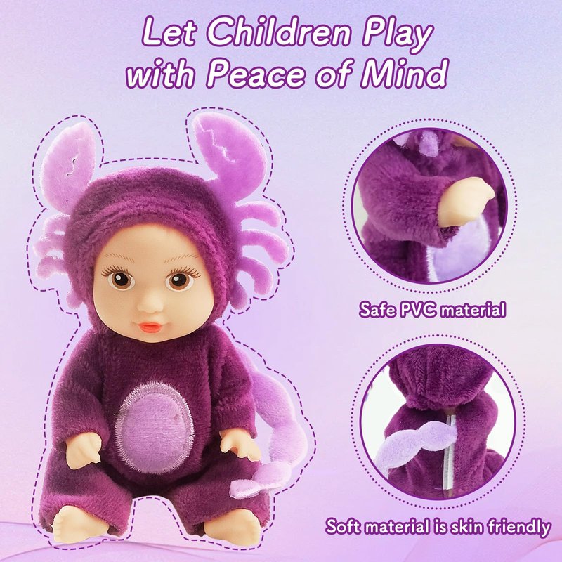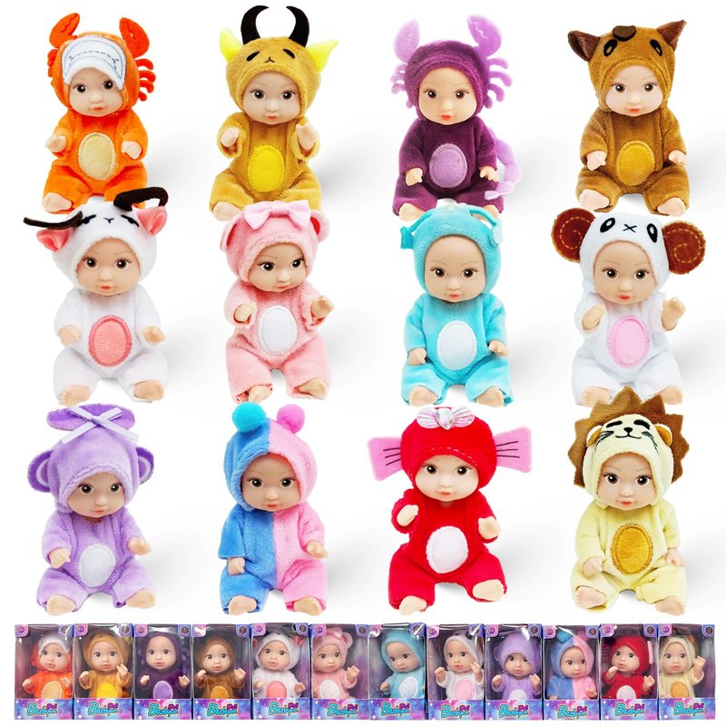 12 Pcs Mini Baby Dolls, 4.5 inch Cute Baby Dolls Toys with Animal Clothes 12 Constellations Series Tiny Reborn Babies for Girls Boys, Cute Doll Gifts for Kids Birthday Christmas