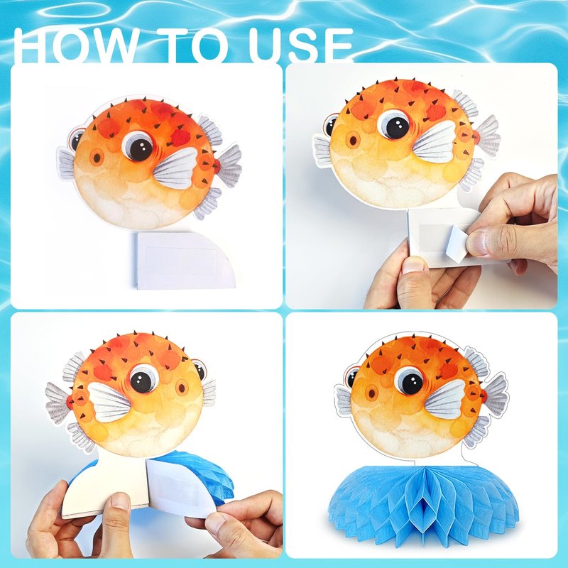 - EASY ASSEMBLE : With just a few seconds to glue the honeycomb to the sea animal card, you can create adorable ocean themed sea animal honeycomb decoration.