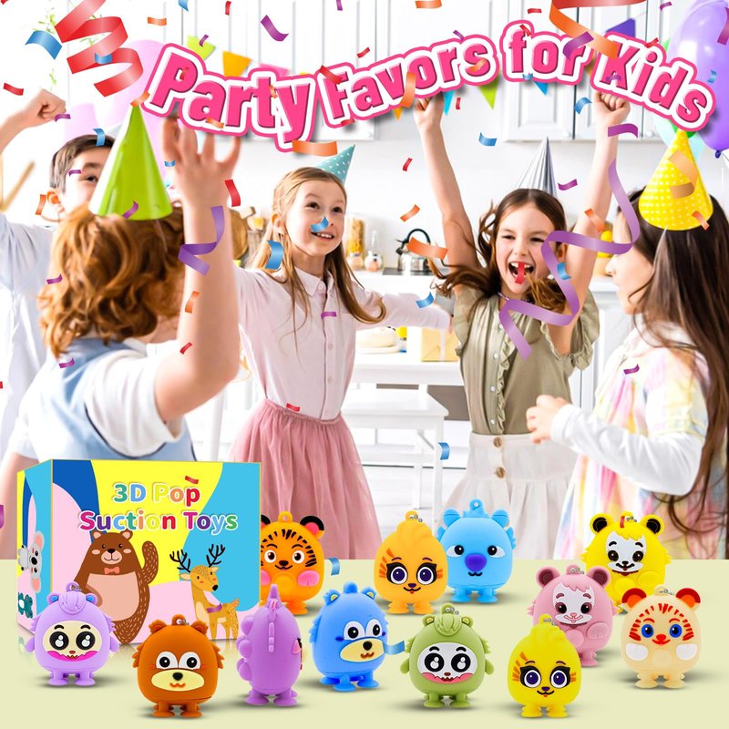 12 Pcs Party Favors for Kids, 3D Animal Pop Fidget Toys Bulk Goodie Bags Stuffers for, Prizes box Toys for Classroom Silicone Bath Suction Toys Birthday Gifts