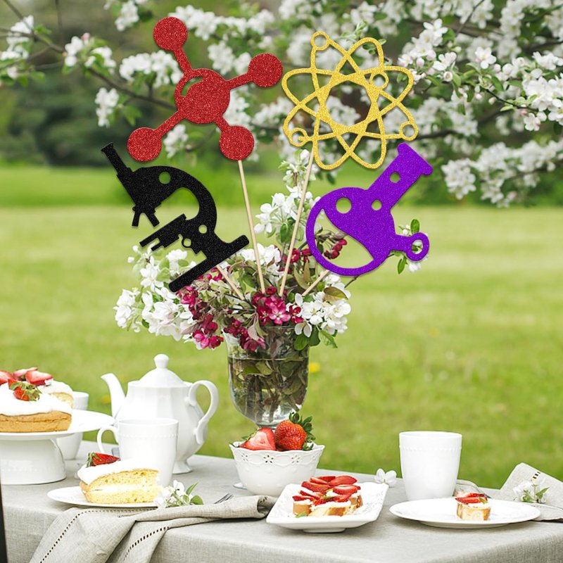 - Package include: 12 pcs Science Party Centerpiece Sticks. Need handmade DIY, simply attach glue dots to each prop and then to the stick.
