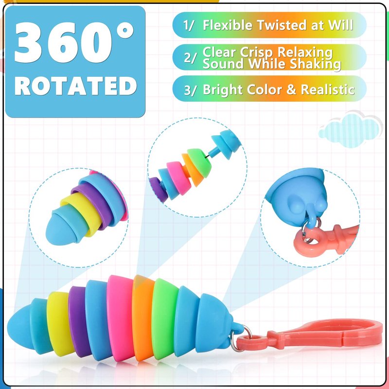 • 【Quality】Fidget Slug toys are made of non-toxic, BPA-free plastic, safe for kids and your family. A variety of bright colors, 12 packs. The interior is connected by elastic cords, which can be properly pulled.