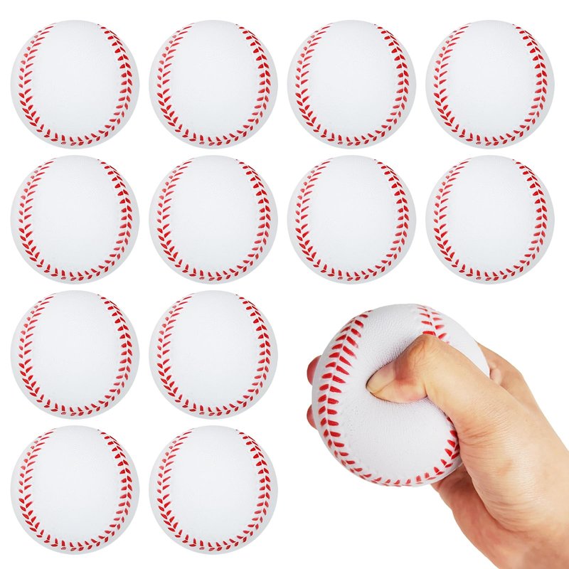 12 PCS Soft Baseball Stress Balls,2.8 Inch Mini Foam Squeeze Anxiety Relief Baseballs for Kids,Adults,Decor,School Carnival Reward,Ball Themed Party Favors