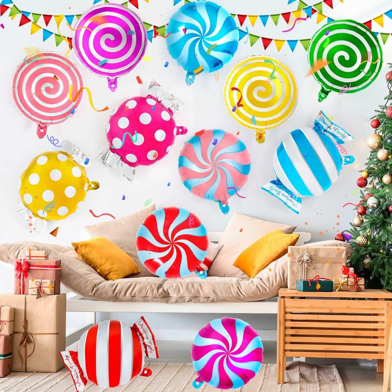 12 Pcs Sweet Candy Balloon Set,18 Inch Candies Mylar Foil Balloons,Round Lollipop Balloon,Candy themed Party Decorations for Kids Christmas Birthday Party Baby shower supplies