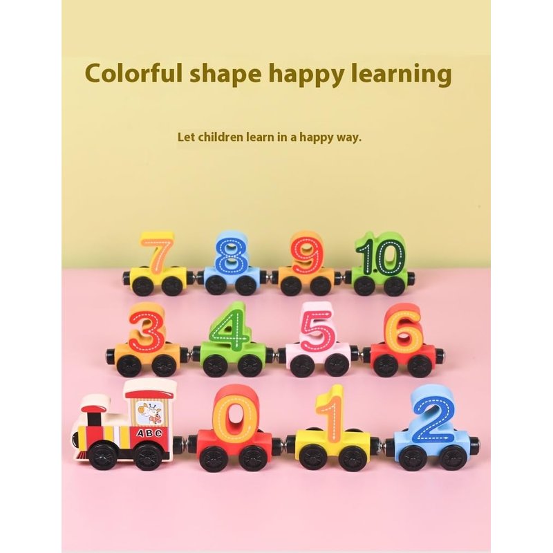 - 12 PCS Number Train: Wooden train set with bright color consists of 11 pcs number,and 1 pcs train head, every train body is individual and connected by magnets. Each train has 4 sliding wheels which glide easily.