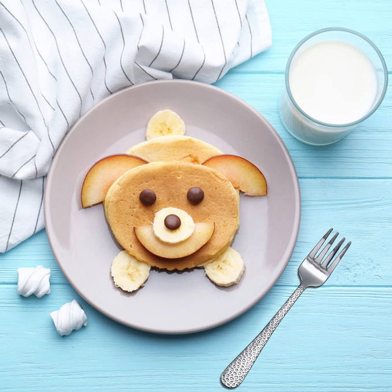 - ✅ PICK UP FOOD EASILY(^ᴗ^) - Smooth edge, Proper thin fork tines make it easy for kids fork soft food by themselves, Suitable for toddlers to practice and adapt to real silverware