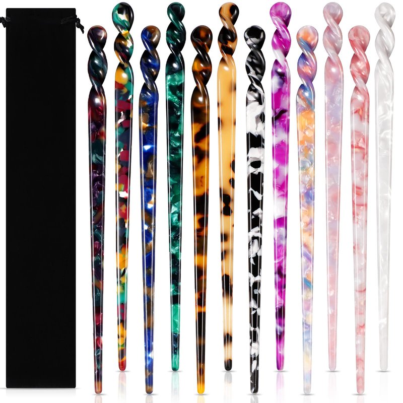 - Sufficient in quantity: you will receive 12 pieces of acetate hair sticks in 12 colors, sufficient quantity and various classic color of these tortoise shell hairpins can meet your daily using and replacing needs