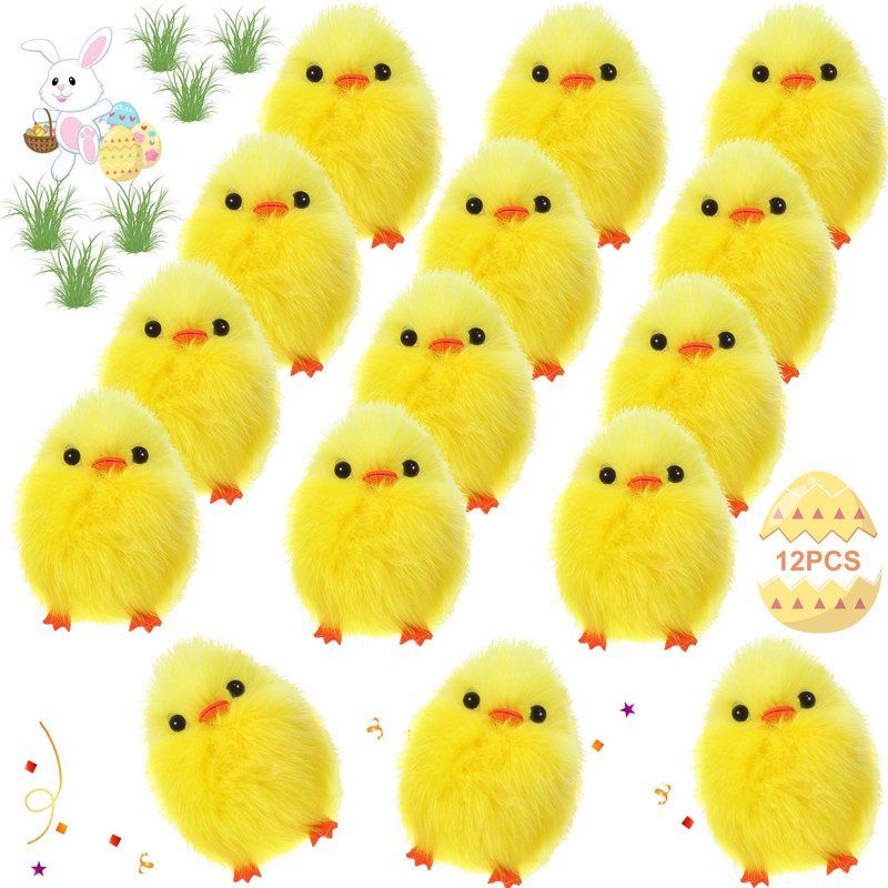 12 Pieces Easter Fur Chicks Fluffy Chenille Chicks Soft Plush Toys Easter Chicks 2.5 Inches Kids DIY Easter Egg Bonnet Decorations Chick Plush Stuffed Animal for Easter Party Favors