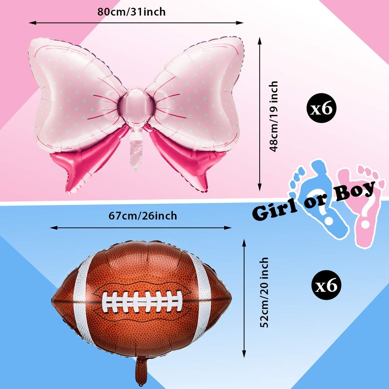 - Exquisite balloons set: there are 12 beautiful gender reveal balloons including 6 pieces of bow balloons and 6 pieces of football balloons in the package, the quantity is enough to meet your needs, they will make it easier for you to prepare an impressive and joyful party