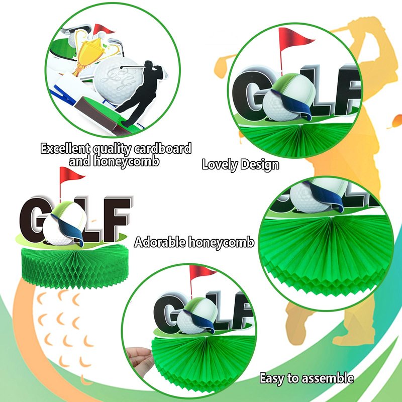 - What You Will Get-Package Include 12 pieces golf honeycomb centerpieces,including 8 honeycomb and 4 sets of standing golf player cutouts,to meet your party decoration needs.