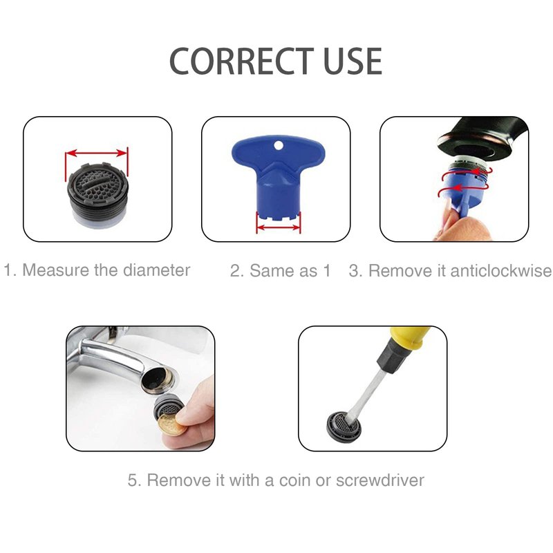 - Great faucet aerator tool set to replace or clean the blocked aerators, effectively fix the low flow faucet and gives you smooth flow again.