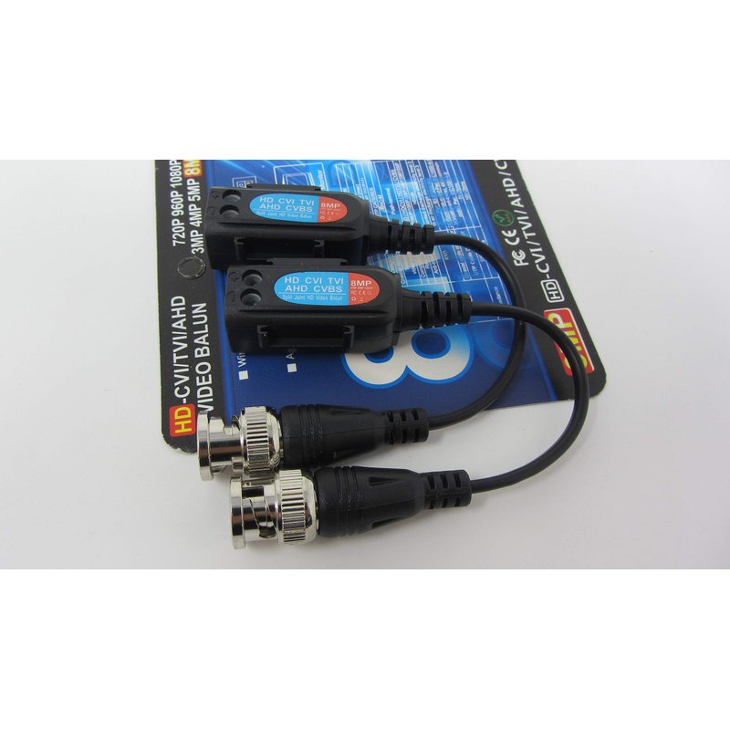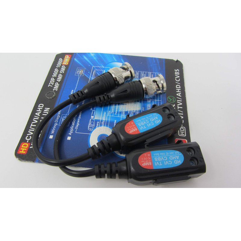 Features: *Easy installation, using the standard UTP cable system *Male BNC allows connection directly to the camera or DVR *Support all video devices, such as camera, monitor, DVR card and recorder etc. *Lower budget, the price of CAT 5 cable is much less than coaxial cable *Using UTP cable (CAT 5, RJ45) to transmit video, audio signal instead of coaxial *Utilize existing wiring. Already have structured cabling systems? Simply connect a balun at each end of the cable run to transmit your signal. *Reduce installation cost. UTP cables physically smaller than coax alternatives, more cameras through a smaller diameter, extremely easy to install and terminate. *Better EMI and RFI interference rejection than coaxial cable *Lower cable cost. The cost of video balun plus Cat 5 cable may less than traditional wire. Especially for high cost Plenum Coax cables