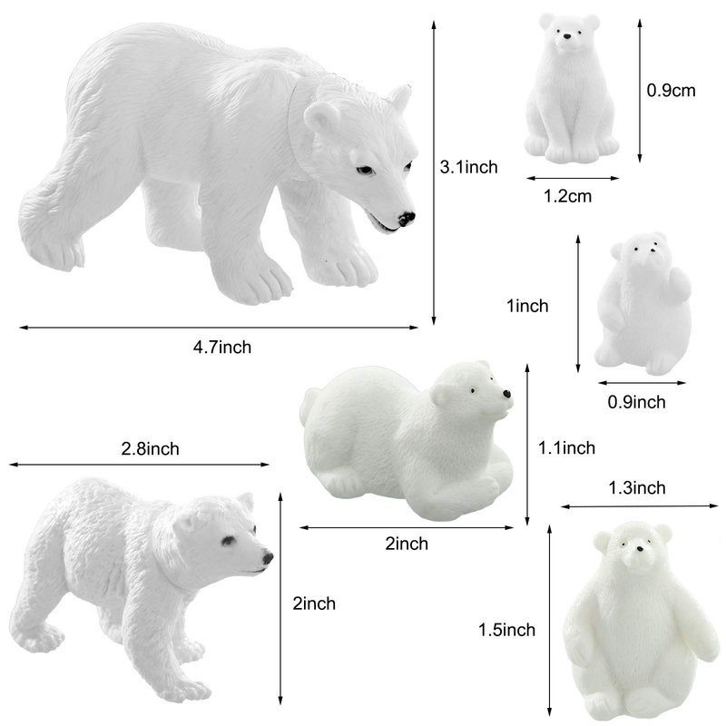 - Package includes: get a set of polar animal figurine, including 6 pieces of polar animal bear family and 6 pieces of penguin family figures, each measures about 0.6 to 4.7 inch in length and 0.8 to 3.1 inch in height