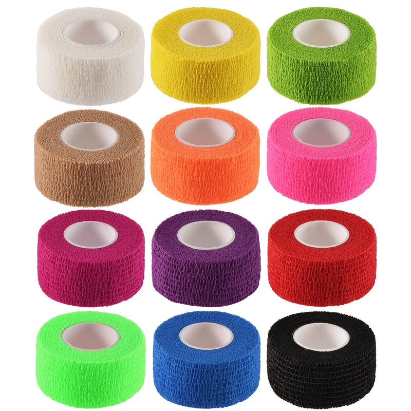 - Quantity: 12 rolls of self-adherent sports tape; Color: 12 colors, include black, white, blue, red and so on