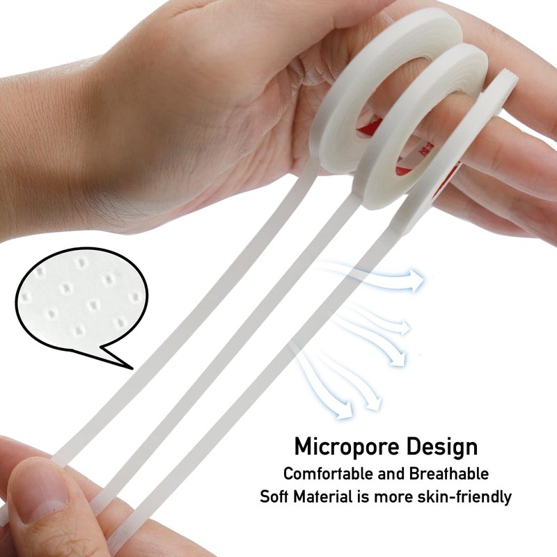 - Ultra-Narrow Size: The micropore tape only 4mm(0.15 inch) in width,can minimize contact with skin. You can tear eyelash extension tape into any length you need. Perfect for covering the lower lashes or to tape the eyelids during eyelash extension application.