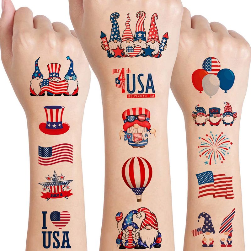 - 4th of July Party Favors: The package comes with 12 sheets different 4th of July tattoos stickers, enough for sharing with your friends or family; These 4th of July temporary tattoos will add more fun to your Independence Day-themed birthday party, making your party more attractive and leaving a deep impression on your guests.