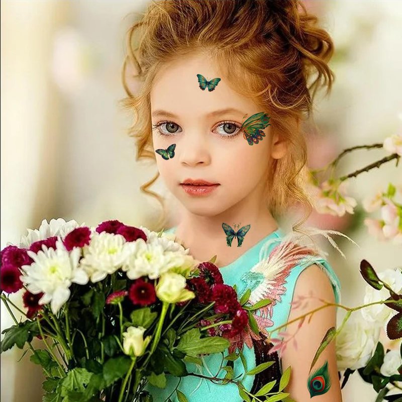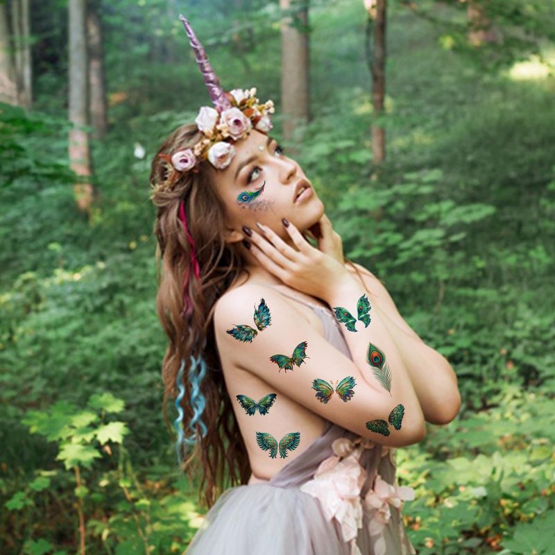 - Design: This temporary tattoo sticker adopts butterfly peacock feather design, beautiful and realistic, a variety of colors and patterns to choose from, bright colors, long-lasting luster, so that you look more attractive