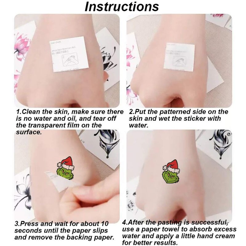 • Christmas Party Decorations: The set contains instructions for use and is easy to use. Xmas tattoo designs are very attractive to kids, you can put it all down and put it on your hands, arms, kettles, balloon,cups, and other things. Whether it is a family activities or a variety of parties, it will add a lot of unique fun