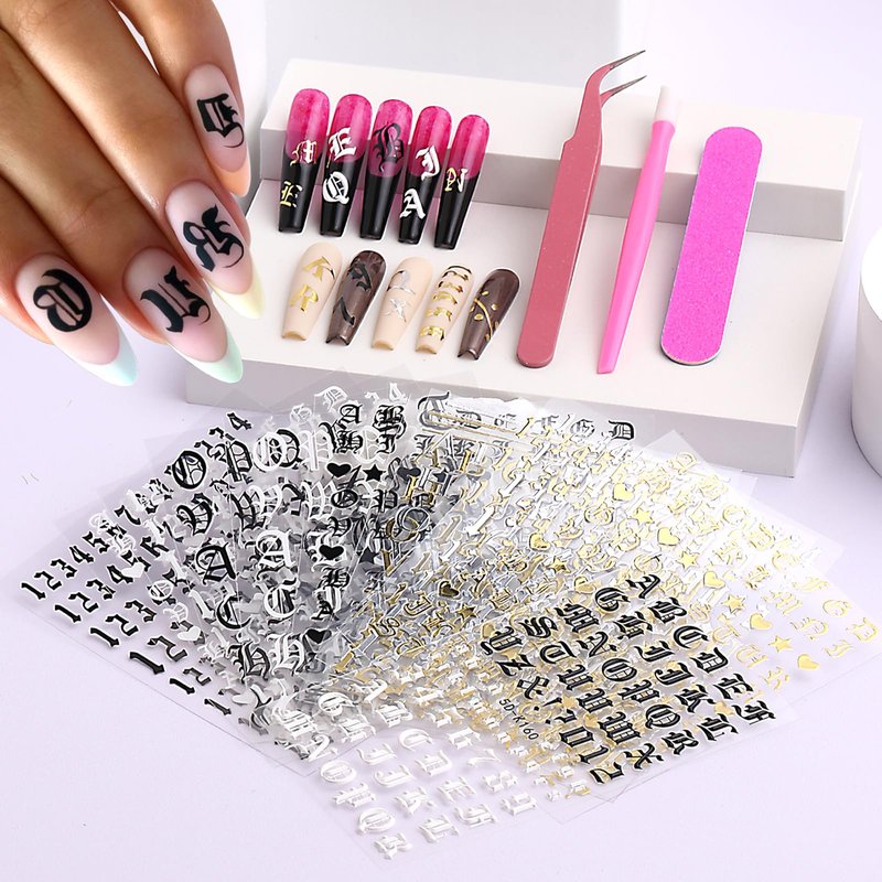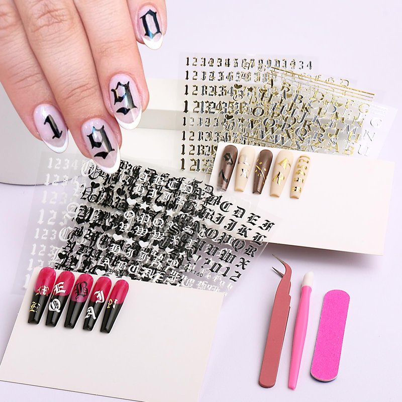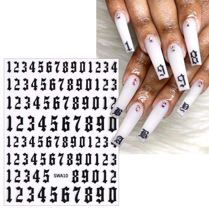 3. Classical letters&number nail decals, you can diy each english words on your nails.