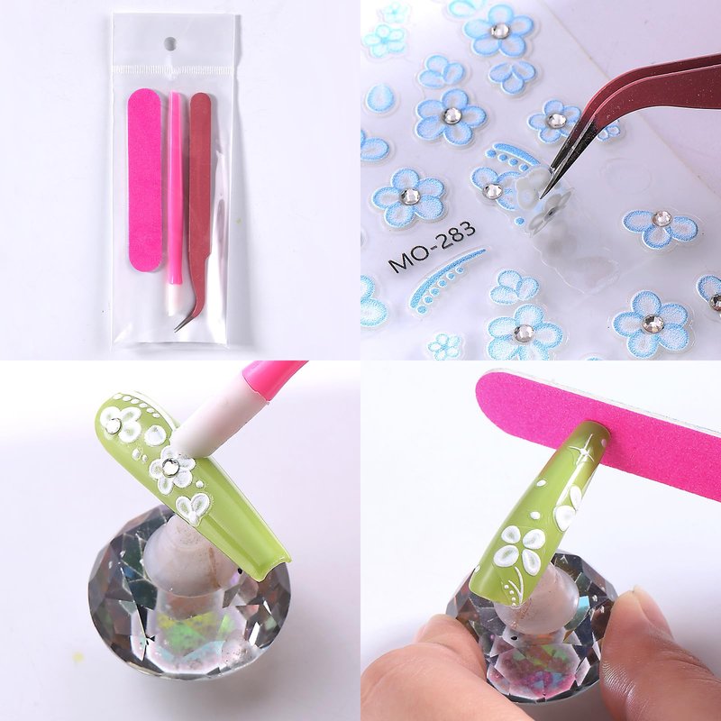 - 【Easy to Use】First use tweezers to peel off the self-adhesive nail stickers you want, then press stickers with stick make the sticker more secure. Because the nail stickers are self-adhesive, you can use them with no glue. For longer lasting, you can apply top coat on it.