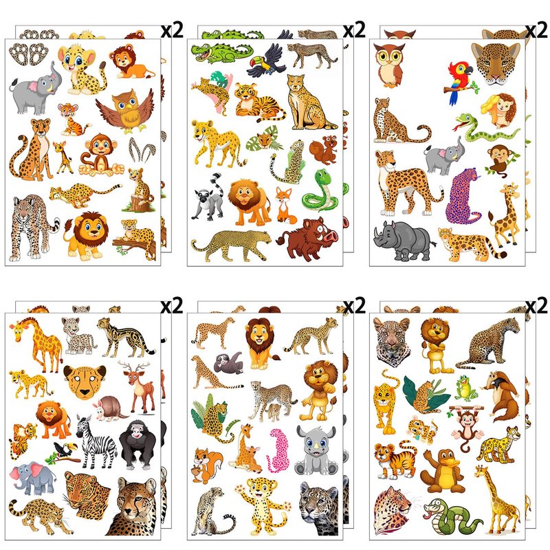 Quantity: 12 Sheets Jungle Animal Temporary Tattoos for Children's