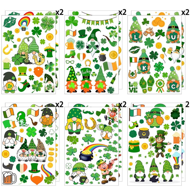 - St. Patrick's Day Party Favors: The package comes with 12 sheets different St Patricks Day tattoos stickers, enough for sharing with your friends or family; These St Patricks Day temporary tattoos will add more fun to your shamrock-themed birthday party, making your party more attractive and leaving a deep impression on your guests.