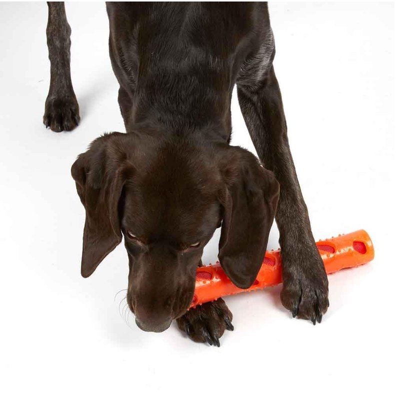 12" Crinkle Stuff Spiky Stick Dog Toy Multi-textured toy provides hours of interactive fun. Stimulates dogs senses. Made of durable rubber. Unique spiky texture is durable and massages gums. Crinkle paper center excites dogs to keep engaged. Ideal for a game of fetch or other play. 12" long. Available in blue, pink, orange, or full set of all 3 colors!