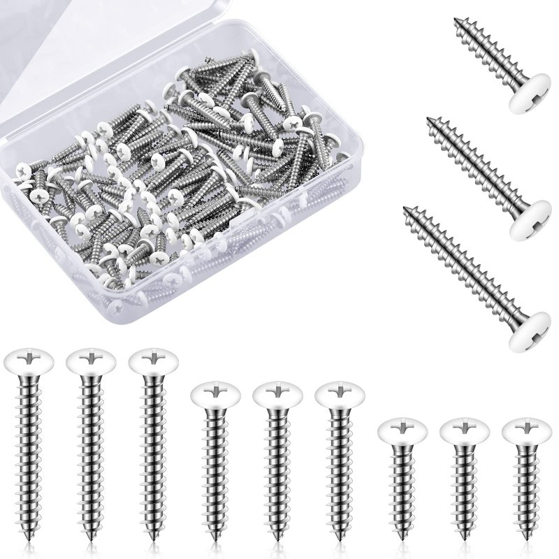 - 3 Different Sizes: the diameter of these white head wood screws are #8, come with 3 diverse sizes, including 3/4 inches, 1 inches and 1/2 inches; Each size has 40 pieces, 120 pieces in total; Ample quantity and various sizes can meet your different needs and replacements