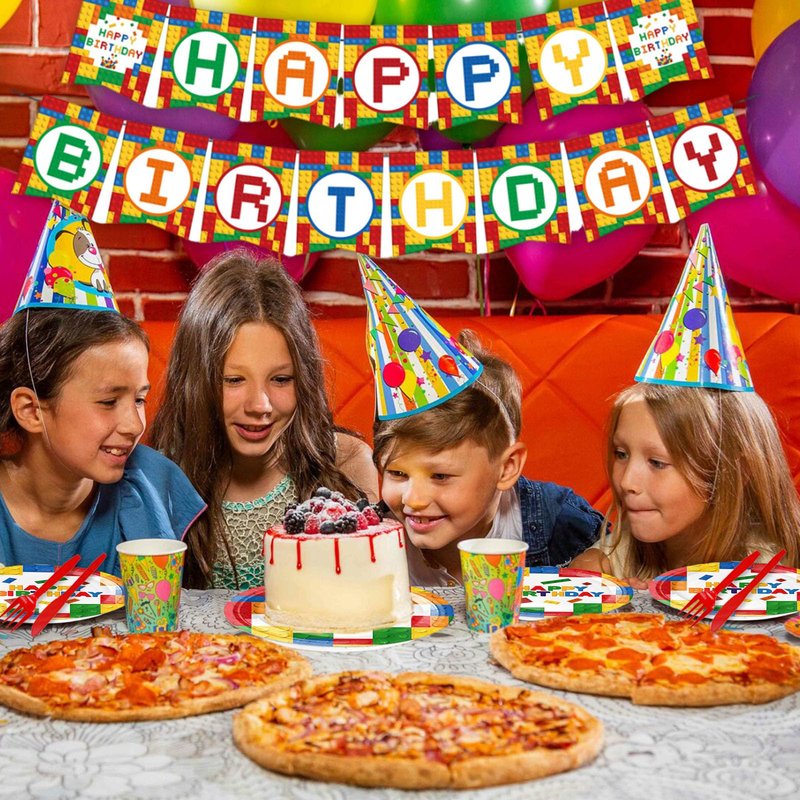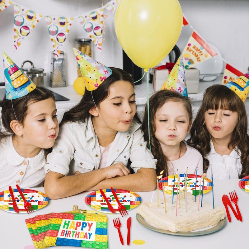 - 【Enjoy the Building Blocks Party】Impress your guests by hosting a memorable building blocks-themed event. Tableware set are completely disposable so no need to worry about cleanup! Save time and enjoy the party with your guests at the Building Block party!