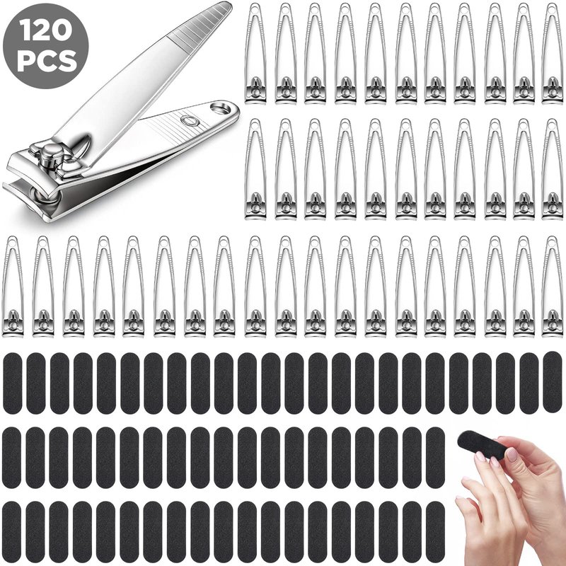 120 Pcs Nail Clippers and Nail File Set Bulk Stainless Steel Nail Cutter Thick Finger Toe Nail Clipper Mini Wood Emery Board Double Sided Nail File Polish Buffers for Manicure Pedicure Beauty Salon