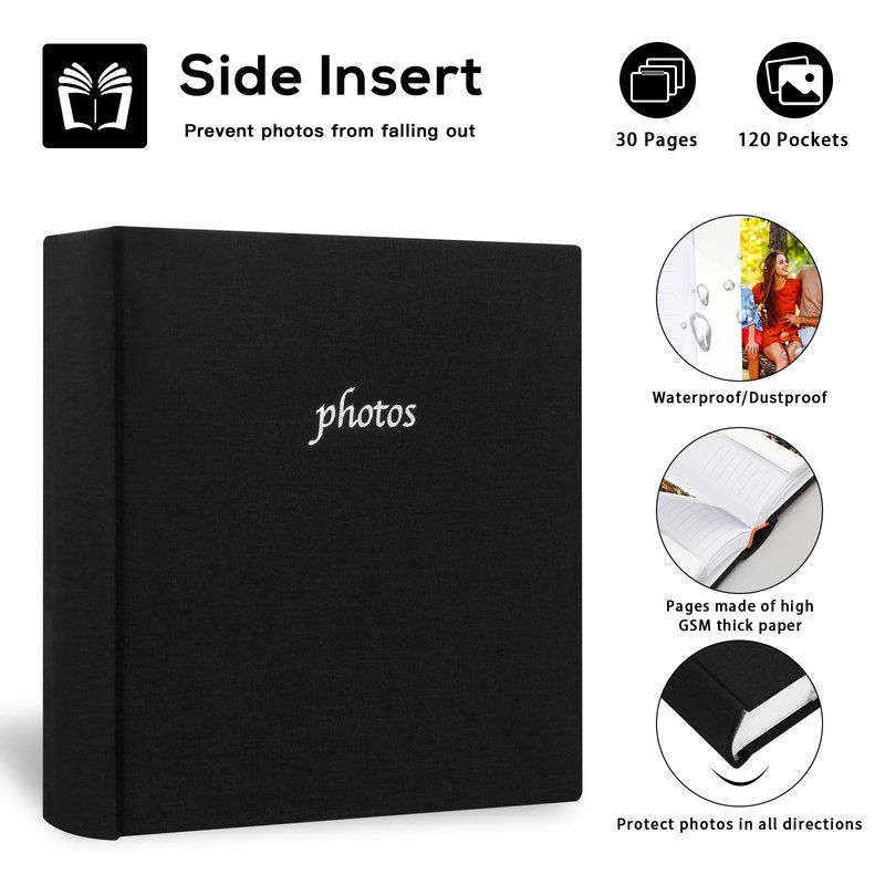 120 Photos Album with Memo Areas for Fujifilm Instax Wide 300 Camera,Linen Cover,Photo Book for Polaroid Now+/Now/I type/OneStep+/600 Instant Film Camera, POP Lab Instant Print Camera (Black)