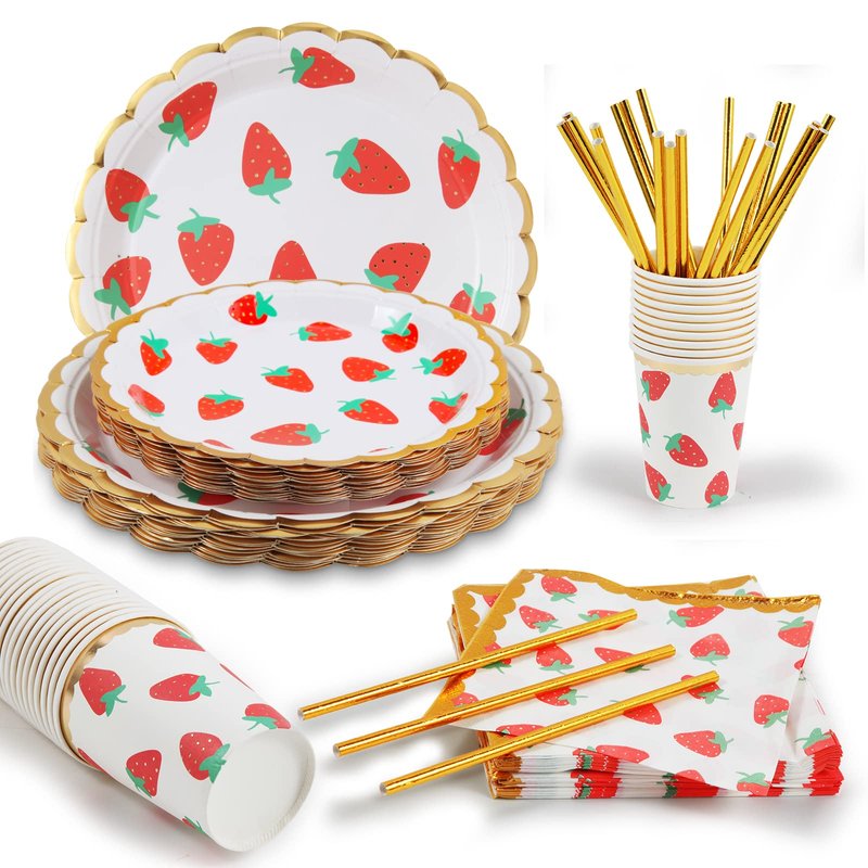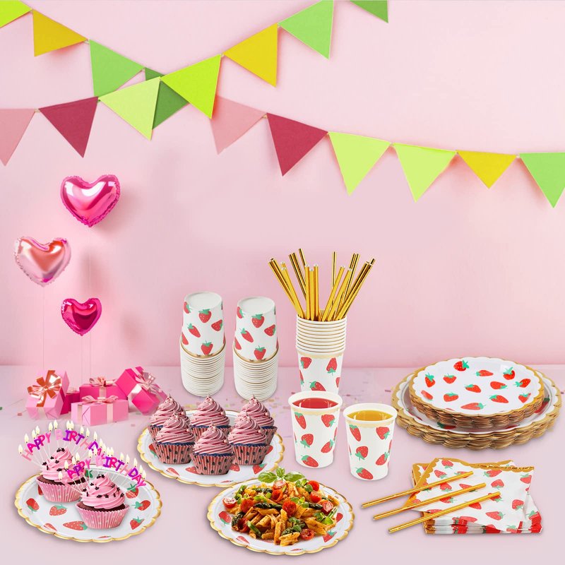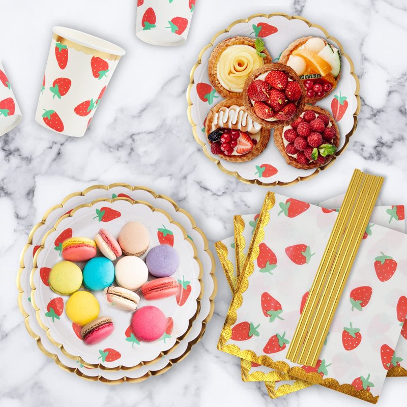 - 【Unique Design】: Strawberry disposable tableware set, white paper with strawberry pattern will be a big hit on the table, add class and high end to your party. This theme party all night can give guests leave deep impression.